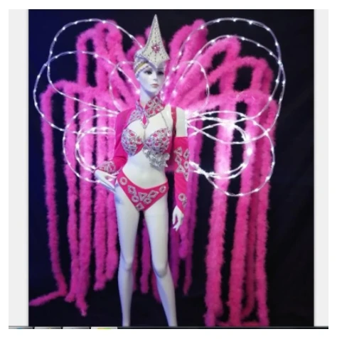 🔈(15%OFF) Beste Kopen Veer Bord Dansen Carnaval Show Roze Led Licht Vrouwen Kostuum Event Muziek Festival Party Prestaties Kostuums Goedkoop