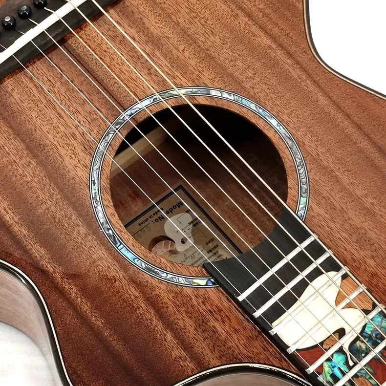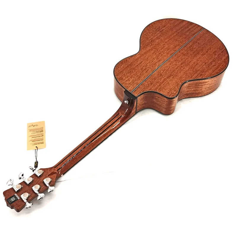 Product Name: Alleen Top Massief Hout High-End 38 Inch Gitaar Volledige Mahonie Gloss Finish Folk Ontbrekende Hoek Patroon Akoestische Gitaar Metalen Snaren