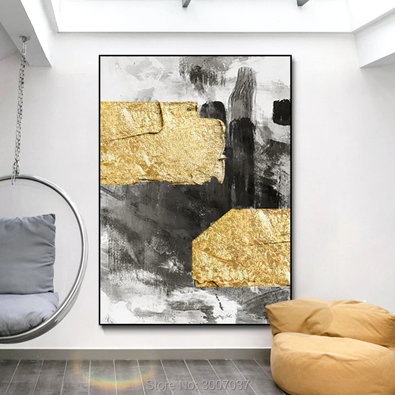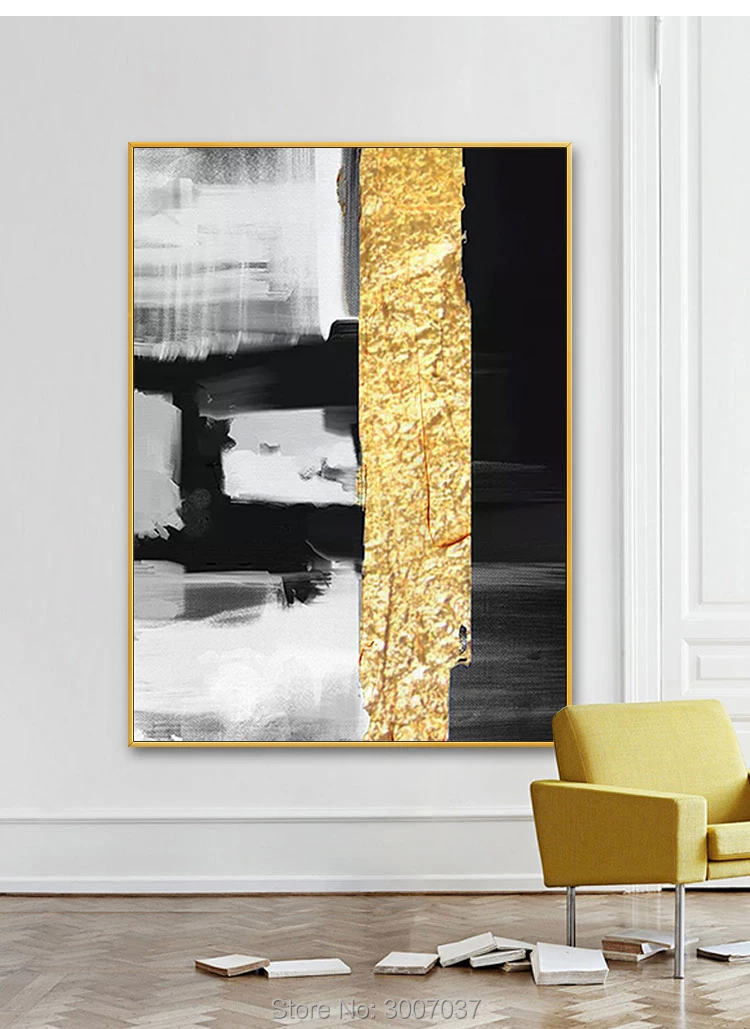 Product Name: 100% Hand Geschilderd Goud Kleur Folies Olieverf Op Canvas Muur Foto Canvas Schilderij Voor Woonkamer Home Decor Geen Frame
