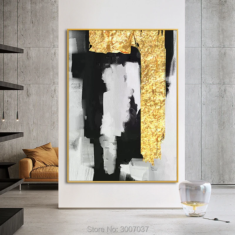 Special Offer 100% Hand Geschilderd Goud Kleur Folies Olieverf Op Canvas Muur Foto Canvas Schilderij Voor Woonkamer Home Decor Geen Frame Discount 82% Today!