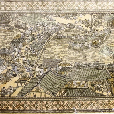 Product Name: Oude Chinese Zijde Tapijten Vintage Handgemaakte Beroemde Schilderijen Landschap Classic Collection Schilderen Qingming Shanghe Figuur