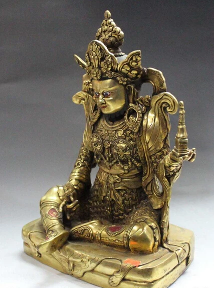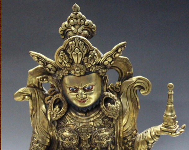 💚(31%OFF) Kopen Goedkoop Bi001664 Tibet Brons 24 K Goud Schilderen Boeddhisme Tempel Warrior Hold Boeddha Stupa Standbeeld Prijs