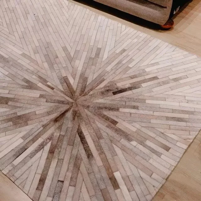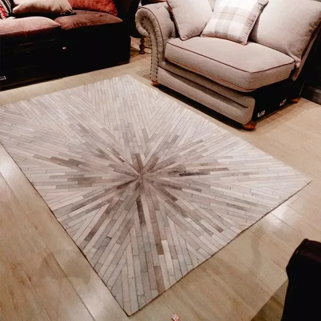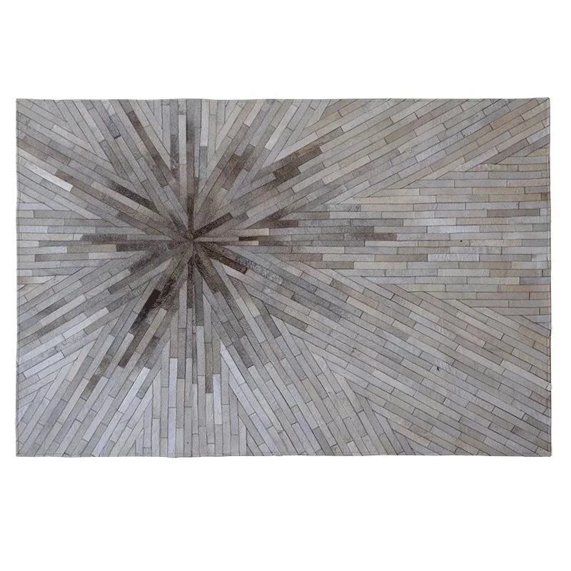 Product Name: Europese Stijl Woonkamer Grijs Tapijt Slaapkamer Handgemaakte Salontafel Vloermat Sofa Koeienhuid Leer Stiksels Tapijt Custom