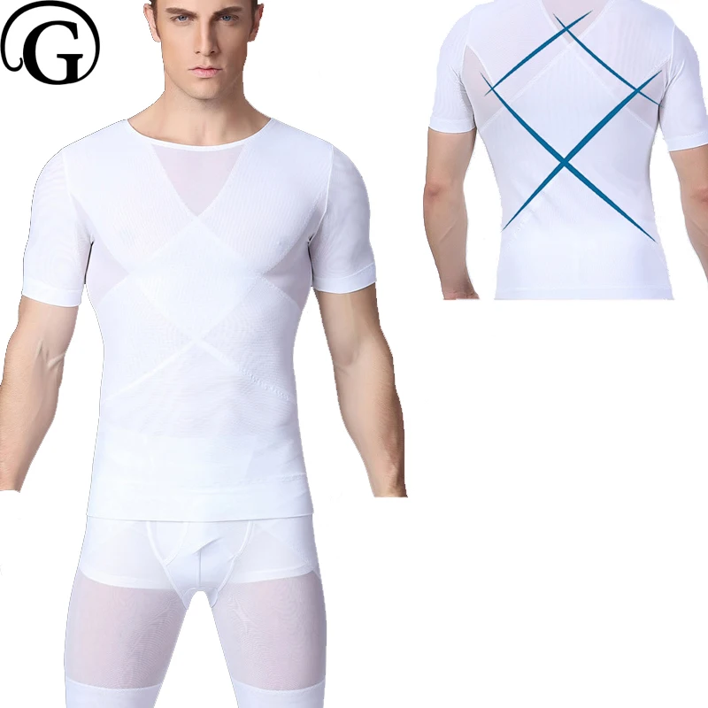 💬(7%OFF) Kopen Goedkoop Prayger 100Pcs Groothandel Mannen Afslanken Borst Taille Shaper Controle Buik T Shirt Slim Mouwen Ademend Houding Tops Prijs