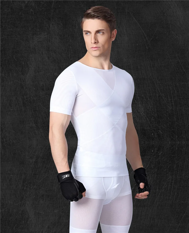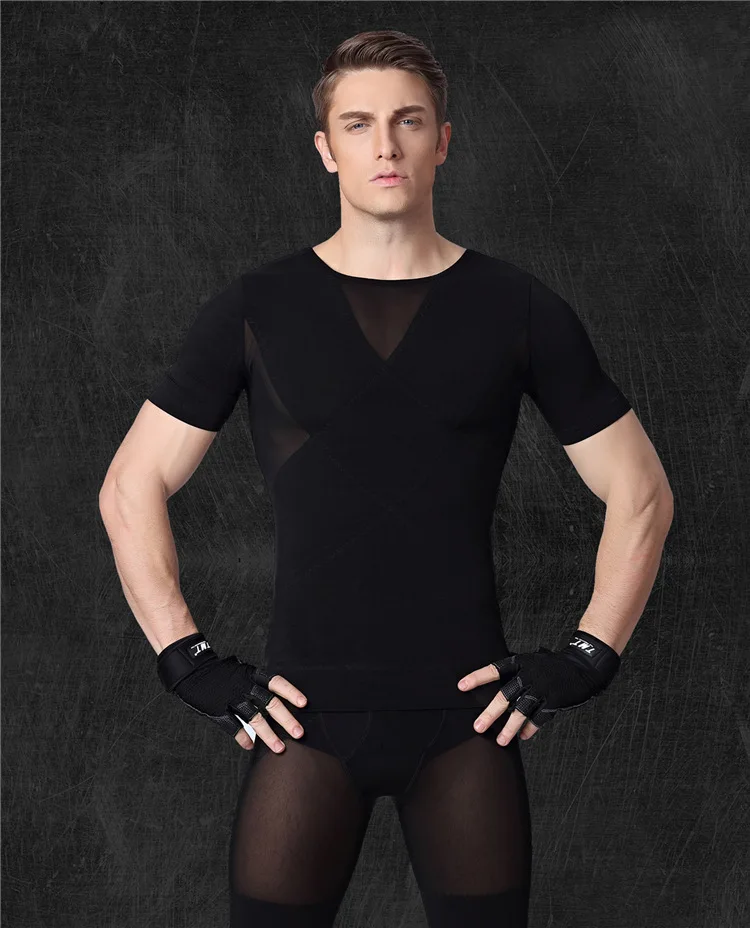 Special Offer Prayger 100Pcs Groothandel Mannen Afslanken Borst Taille Shaper Controle Buik T-shirt Slim Mouwen Ademend Houding Tops Discount 7% Today!