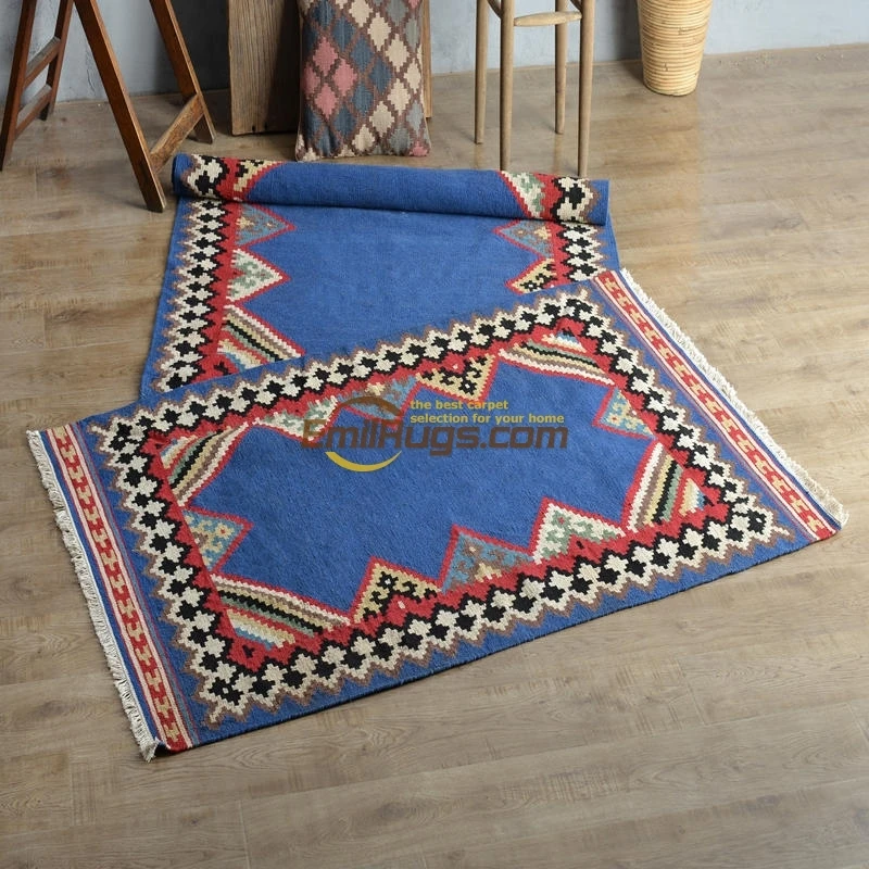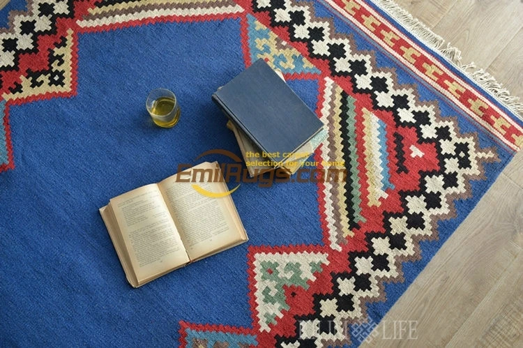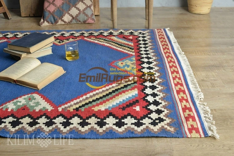 🍀(OFF) Kopen Goedkoop Blauw Pure Handgemaakte Wol Kalkoen Indian Exotische Stijl Kirim Woonkamer Bank Salontafel Tapijt Gc137 9yg2 Prijs