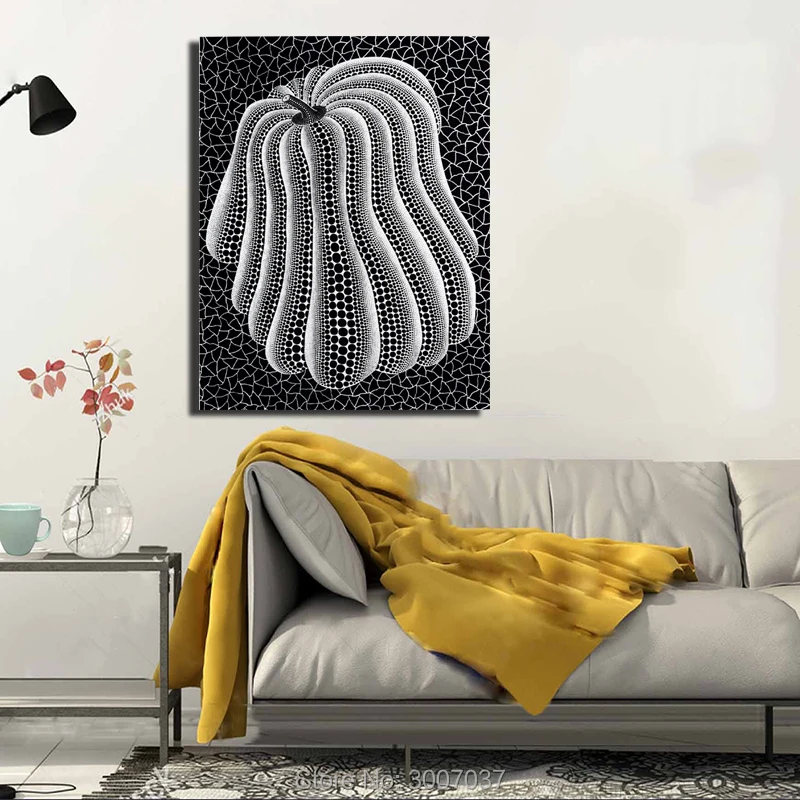 Special Offer Zwart En Wit Pumkpin Canvas Schilderij Yayoi Kusama 100% Hand Geschilderd Olieverf Wall Art Voor Woonkamer Cuadros Decoratie Discount 94% Today!